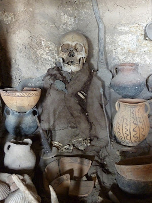 The foreheads were also unusually low and sloping, with prominent brows. All had been buried in a sitting position, facing the lake.